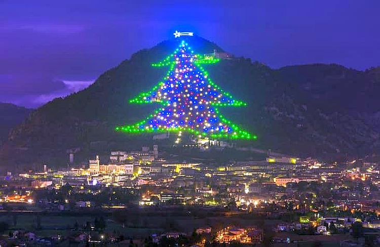 Op 7 december wordt met veel tamtam in Gubbio de grootste kerstboom ter wereld aangestoken en deze brandt zodra het donker wordt tot Driekoningen of "Epifania" op 6 januari.