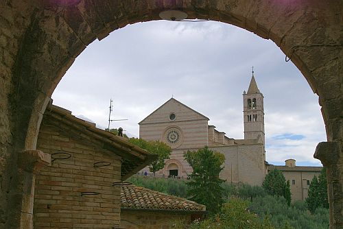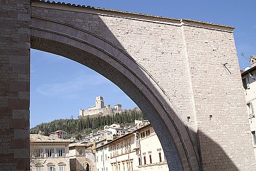 Assisi ha una bella silhouette, dominato dalla Basilica di San Francesco e il castello, la Rocca Maggiore, sulla collina, ai piedi del verde Monte Subasio, alto 1290 metri.